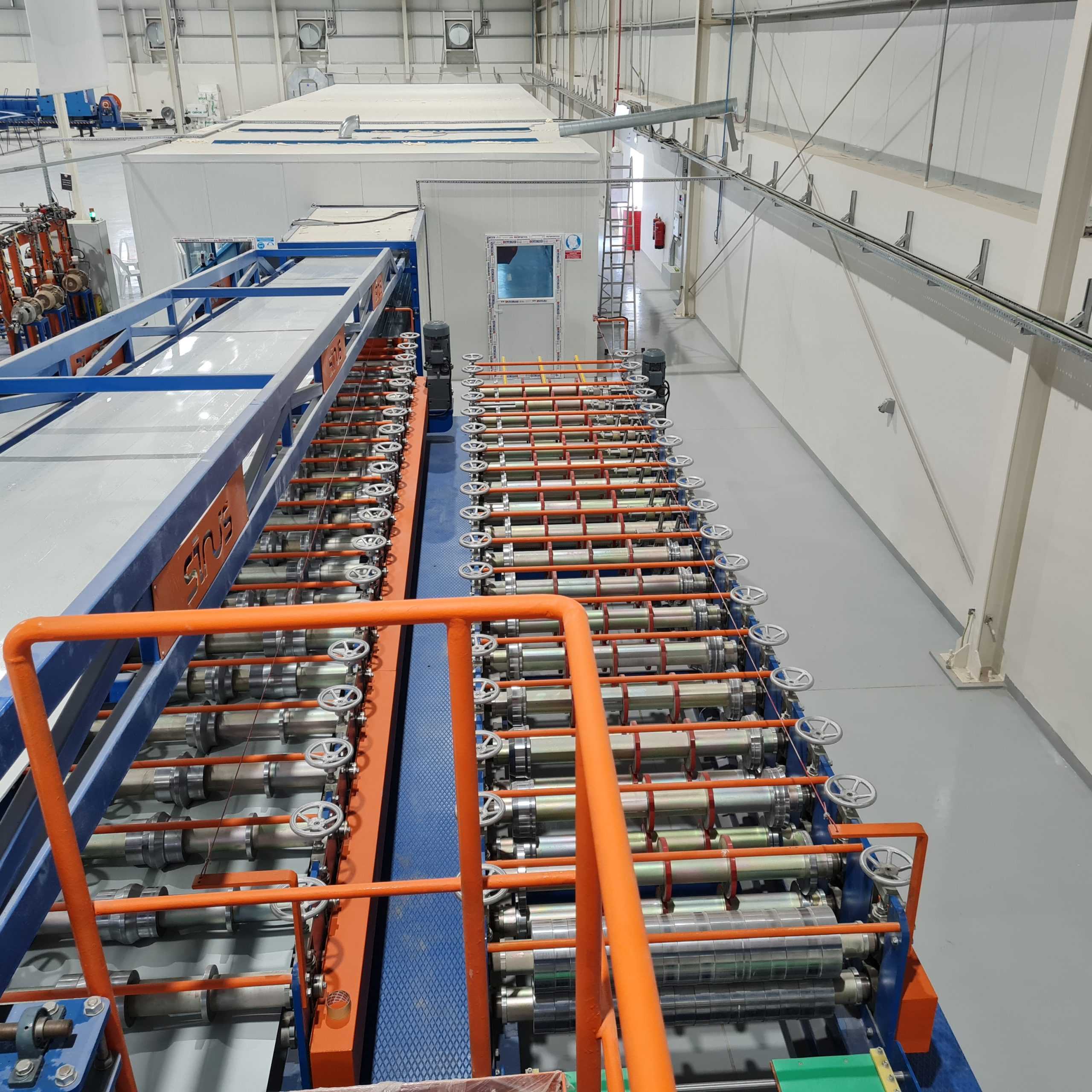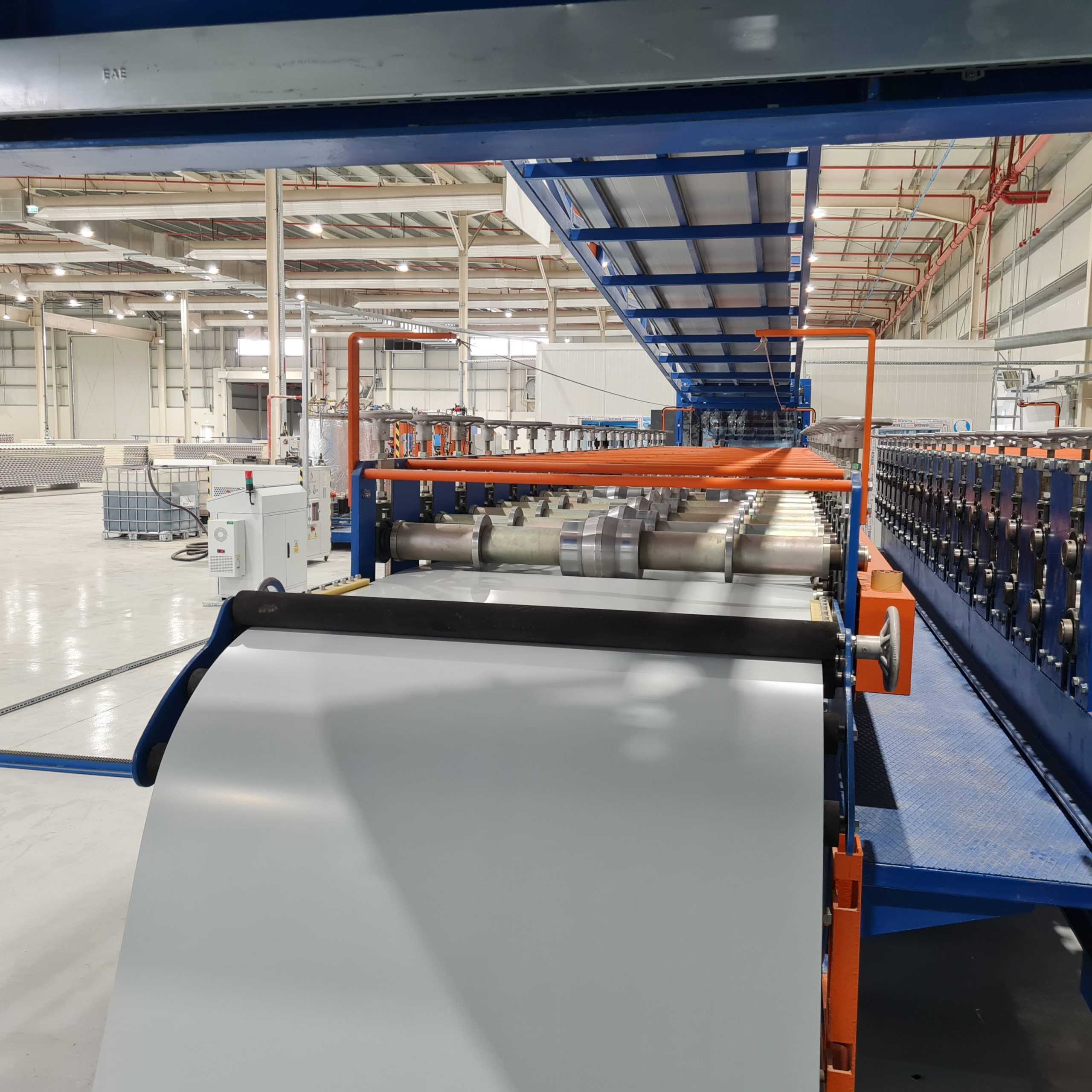 Uncoiler – Feeding Guide – Protective Film Coating – Roll Forming Machine – Rolling Conveyer – Steel Pre-Heating – Foaming Machine – Double Belt Pressing Machine – Rolling Conveyer – Auto Fly Cutting To Length – Runout Table – Auto Vacuum Stacker – Auto Packing Machine